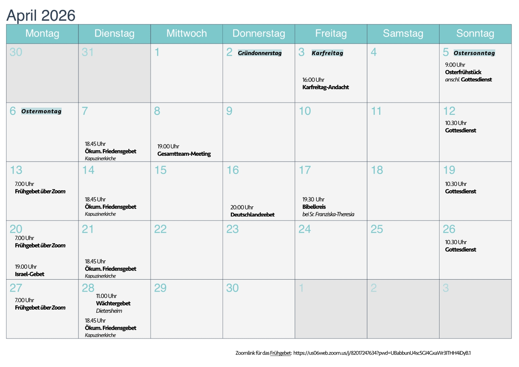Unsere Gottesdienste sind sonntags um 10.30-12 Uhr.  Jeder ist eingeladen mitzufeiern, die Liebe Gottes zu entdecken und Ihm zu begegnen.