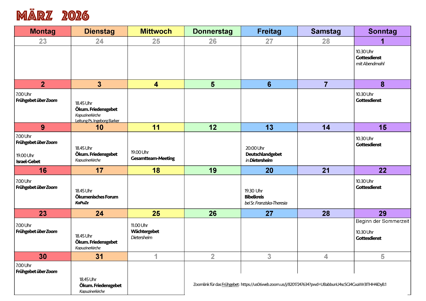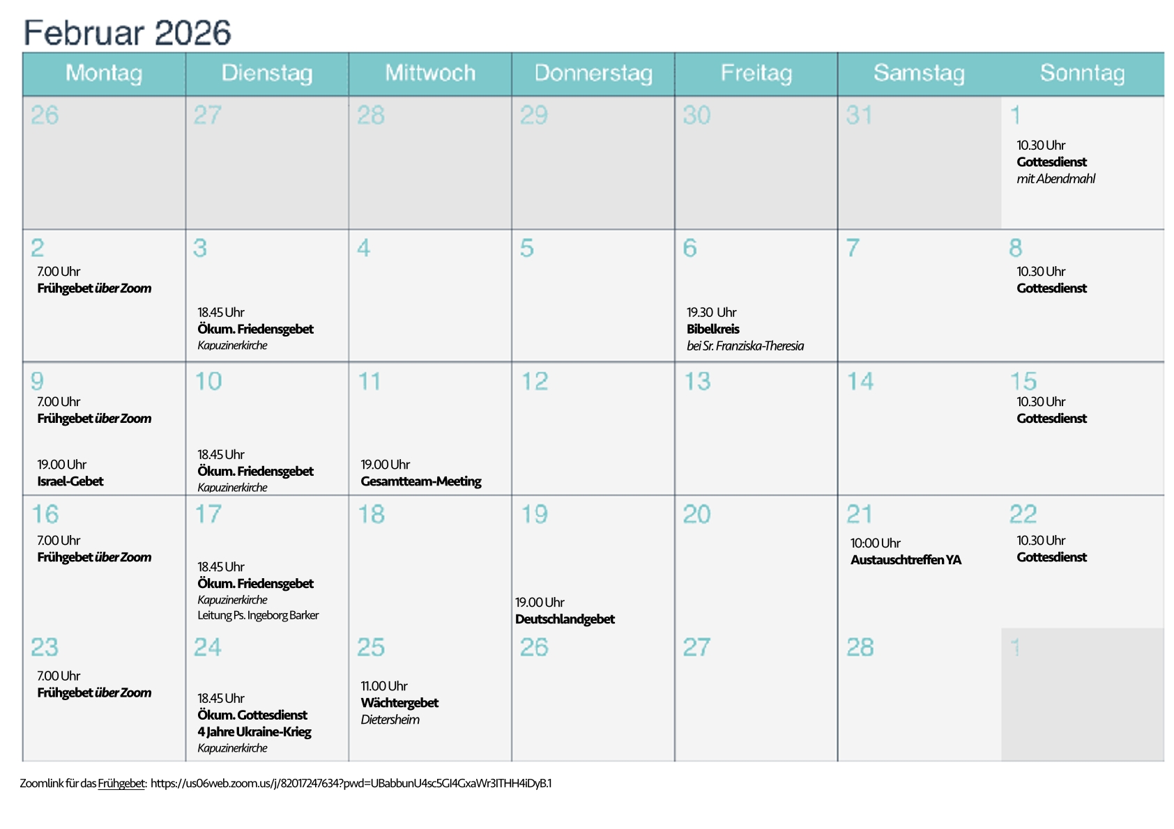 Unsere Gottesdienste sind sonntags um 10.30-12 Uhr. Jeder ist eingeladen mitzufeiern, die Liebe Gottes zu entdecken und Ihm zu begegnen.